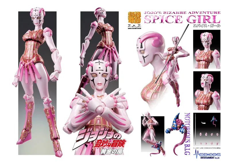 A figura de Spice Girl da franquia Jojo’s Bizarre Adventure, fabricada pela Medicos Entertainment, é um item imperdível para os fãs da série. Feita de PVC (policloreto de vinila) e ABS (acrilonitrila butadieno estireno), essa figura apresenta materiais de alta qualidade e durabilidade.